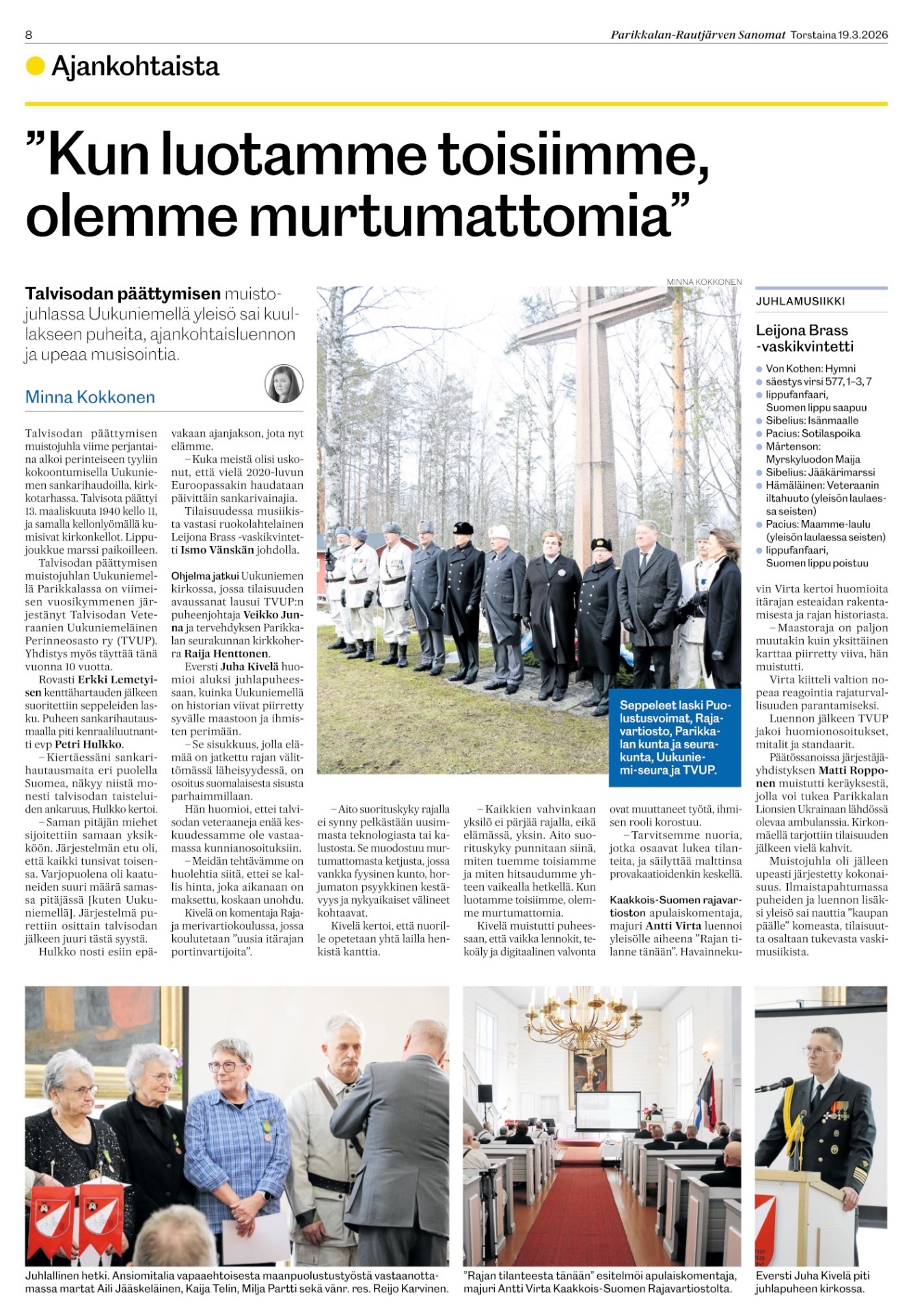 TVUP suoritti seppeleenlaskun ja kunniavartion Uukuniemen sankarihautausmaalla. Seppeleenlaskijoina toimivat ltn evp Martti Riekki ja vänr res Matti Laukkanen. Kunniavartiossa olivat ltn res Paavo Kontiokorpi ja ylik res Matti Ropponen. Parikkalan kunnan seppeleen laskijana toimi myös kunnanvaltuuston puheenjohtaja vanhempi rajavartija (ja myös ltn res) Maija Valkeapää.